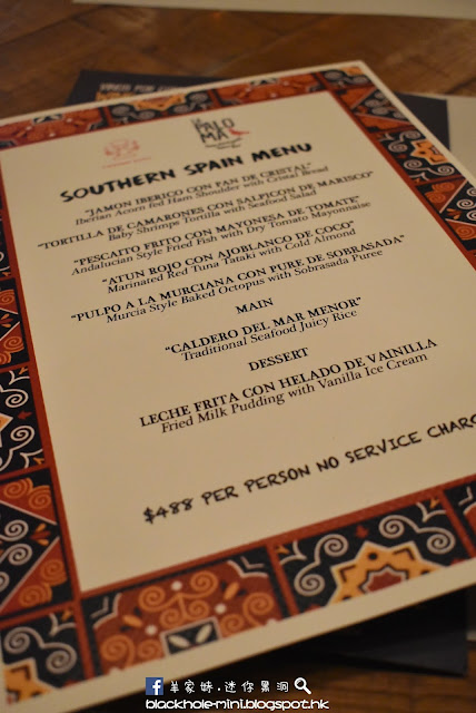 是晚來到位於西營盤的La Paloma,一嚐富西班牙南部風味的限時餐單,餐單包含五款頭盤、主菜和甜品各一。