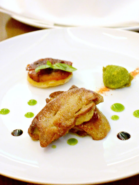 Lobster Caesar,Flambéed Lobster Tail with Cos Lettuce,VND650,000,點了一客龍蝦沙律,侍應在我們面前把龍蝦輕輕煎熟,再混勻沙律菜及沙律菜,蝦肉鮮爽,簡單滋味。Seared Foie Gras,VND600,000,煎鵝肝是餐廳的招牌菜,表面煎得微微脆,內裡嫩腍,充滿油份,脂香豐腴。