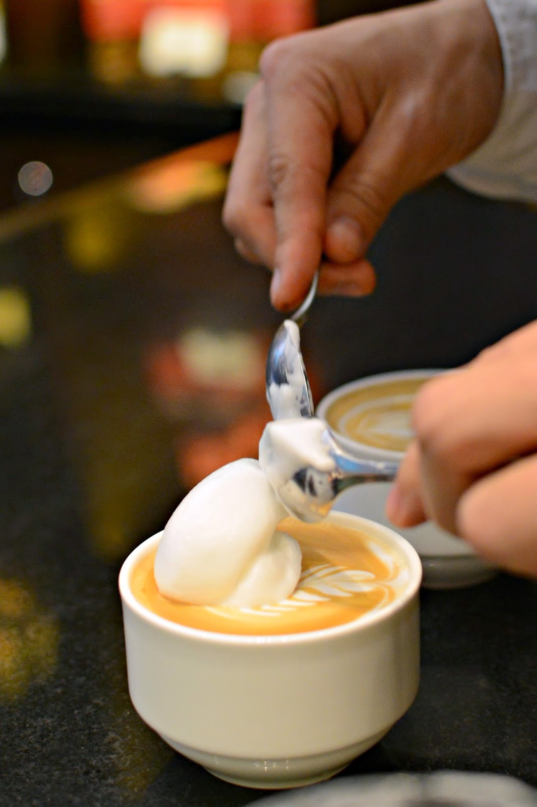 這天Kazuki Yamamoto先來到澳門,先即席示範咖啡拉花。由起初繪畫2D卡通人物等咖啡拉花圖案,到後來鑽研3D立體咖啡拉花,他的3D作品在社交網站Twitter上被瘋狂轉傳,所以被認為是3D咖啡拉花的始祖。他先沖調好一杯Latte,再打製奶泡,再把泡沫放在咖啡上,只需三至五分鐘,立體的圖案便完成,如可愛的小兔、Hello Kitty,更可把平面跟3D拉花造成照鏡影像般,十分有趣。