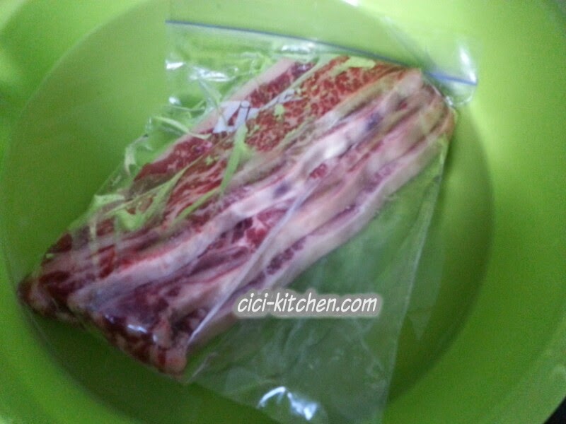 1. 牛仔骨可於一晚前放雪櫃下格解凍. 如時間不足, 可將牛仔骨放進用密實袋, 之後整袋放入水中解凍.