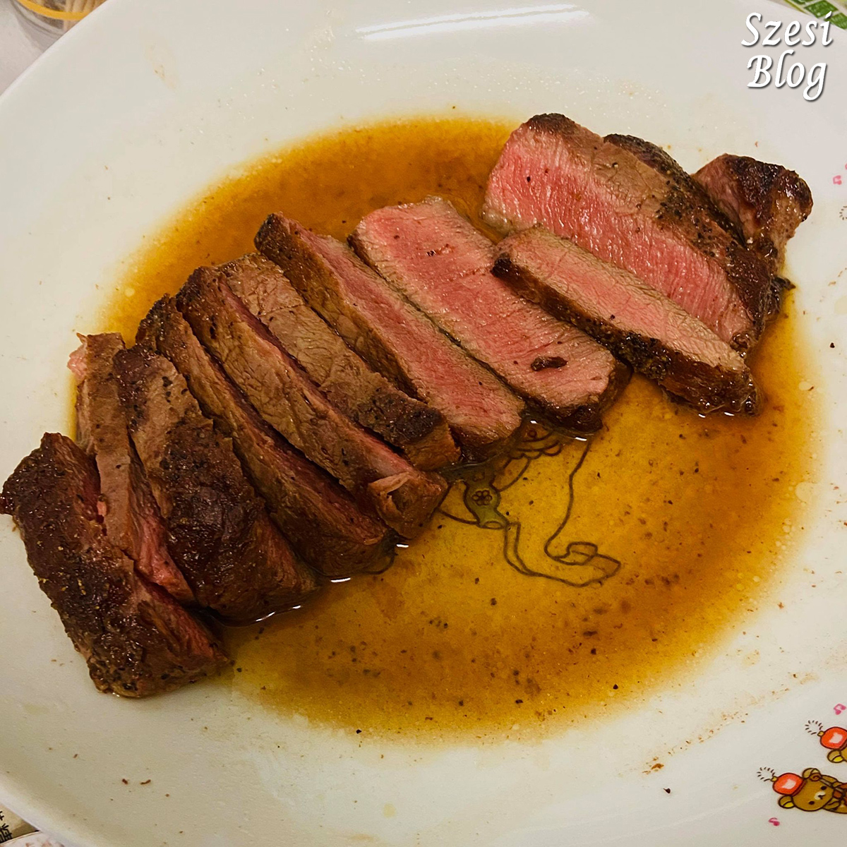 2分鐘後就是介乎5成熟狀態,外邊帶點焦邊,軟腍帶點韌性。而且加入牛油,肉香更加濃郁,少少調味已經足夠,不用太多,太多就搶了牛肉香味!