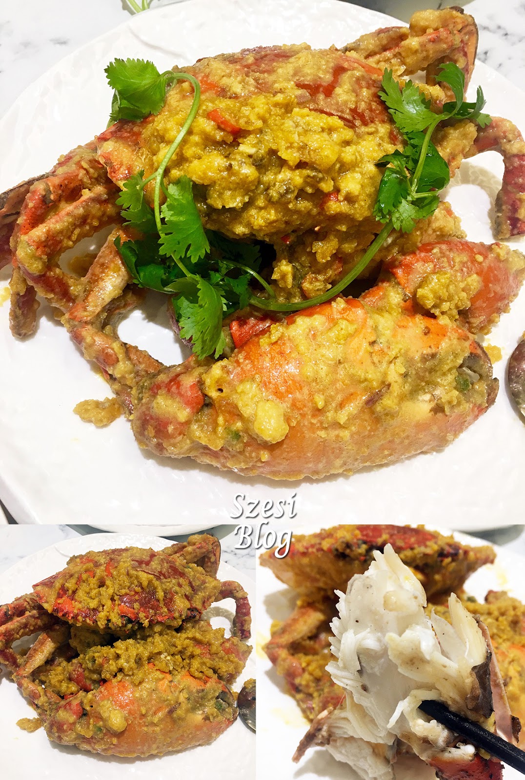 愛吃咸蛋黃的我,非常愛這道菜。吃蟹前先吃黃金醬,流沙般的咸黃很濃郁香味,真是用來拌飯也很幸福。現時咸蛋黃滿佈蟹身上,已經令我垂涎三尺!