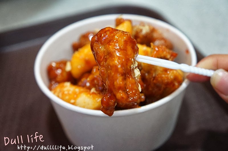 炸雞每塊為一口Size,而且已經去皮去骨了,配上醬來吃不會很油膩,很容易食上癮的韓辣醬辣的很過癮,我們都比較偏愛這款口味的