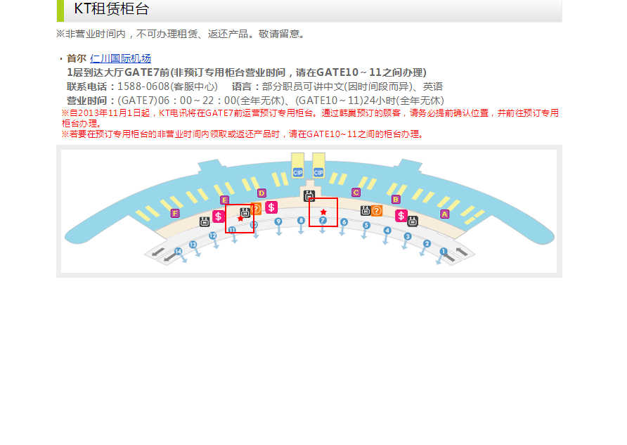 服務櫃檯:仁川機場1/F Gate6-7中間 / Gate8-9中間 / Gate10-11中間