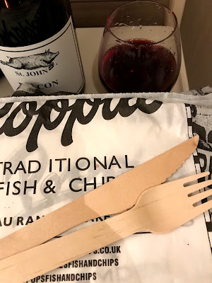趕及在臨關門前達陣,諗住打包回酒店吃,見到廚房剛剛炸起薯條,但店員說炸魚已賣光。