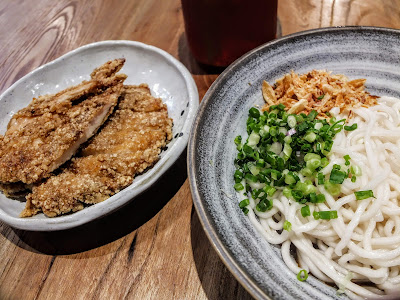牛肉麵吃過,滷肉飯吃過,今次試個炸雞排葱油拌麵,加配一杯冰紅茶。