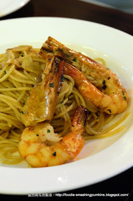 沒有刻意修飾過的外表,香蒜辣椒意大利麵配地中海紅蝦,看似尋常到不得了,實際上是好吃到不得了。
