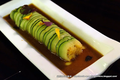 清爽的青瓜,包著的是鮮美的紅蝦,佐以清香的醬汁,是絕佳的開胃菜。
