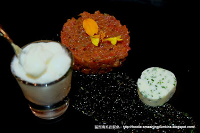 首先,奉上兩道牛肉他他,分別在一個是牛肉他他,一個是番茄牛肉他他。
