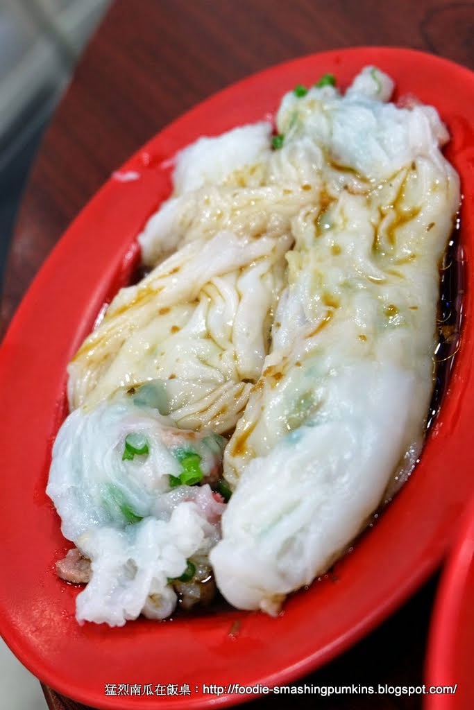 最好奇的,就是它們的腸粉,外表與我們經常吃的腸粉大不同,皺皮的風格,原來是源自廣東台山。並不是用布拉,而是將粉漿與配料,一併倒入蒸爐,當形成腸粉皮之後,用剷刮成這樣子。