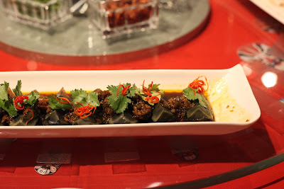 又可能是意料中事,像這一晚。拍青瓜,不夠入味,青瓜的青澀顯然而見,辣汁甜多過辣;口水雞,同一樣問題,辣汁很甜,與質素本來上佳的雞肉有點同床異夢的無奈;蒜泥白肉,中規中矩,香醋杞子黑木耳,尖椒皮蛋,有板有眼。