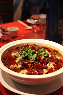 學院最不擔心是食材,放膽地提供靚料給學生們用,這鍋水煮魚,鮮美嫩滑的桂花魚,在血池浮沉著,但外表與內涵始終有點出入,辣度與之前的菜式一樣地隔靴搔癢,麻香方面卻做得不錯。