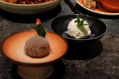 雲陽年代,德哥創作了一些以酒作主調的雪糕,來到川流,以大麴混合朱古力,做出標榜著怪味,實際上是充滿燒酒芳香,濃甜朱古力的意式雪糕;另一款麻椒香子蘭意式雪糕,冰火交融,不知上了幾重天了。