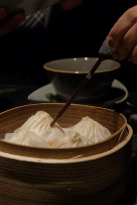 小籠包一籠四件,先把膠管插進小籠包,然後將裡面的醋注入,湯汁與醋得以充份地融合,玩味與食味兼備。