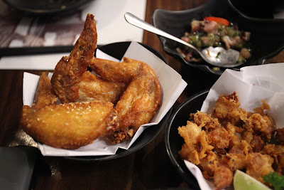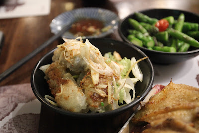 炸墨魚咀,燒雞翼,燒秋葵,燒青椒,令人討喜;炸廣島蠔質感飽滿,味道鮮甜可人。