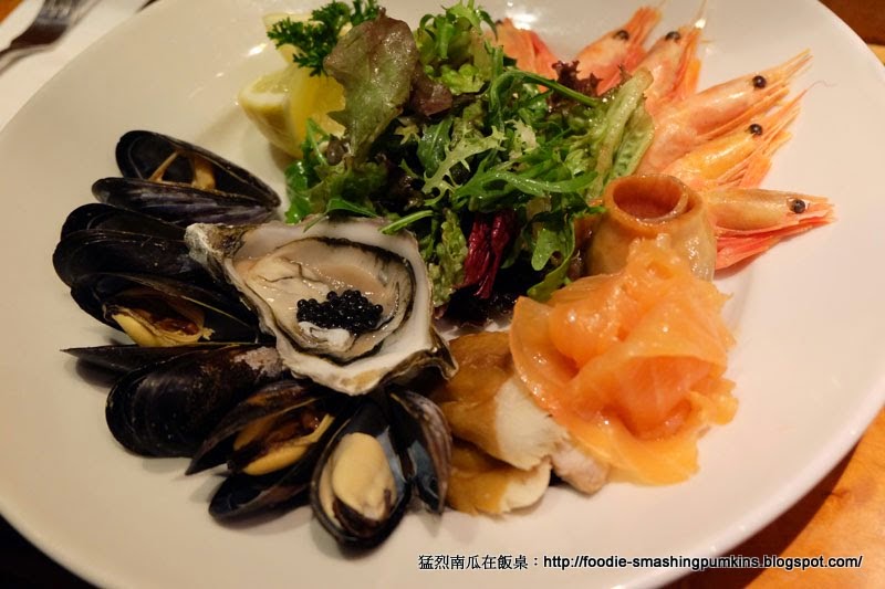 另外點了一個海鮮冷盤,大西洋蝦,煙三文魚,藍貝,生蠔,Sweet Pickled Herring等等,配菜為沙律,我只能說很新鮮,不用十鎊的代價,便可享受這道菜,實在無話可說。