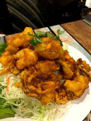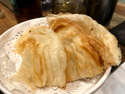 咖喱軟殼蟹,兩者分開上,另外叫碟薄餅來配咖喱,少少辣,但惹味又香滑,炸得香脆的軟殼蟹,件頭也不小,以薄餅撈咖喱汁的任務亦大功告成,一滴也不剩。