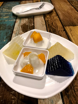 炒多碟菜,差不多了,甜品包括菠蘿糕、椰汁糕、蝶豆花糕,名符其實飲飽食醉。