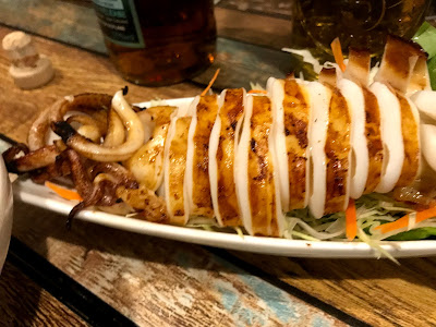 燒原條魷魚,焦香與醬汁香氣夾雜,彈牙的魷魚味鮮得直接,配我的Glen Scotia威士忌就比較好。