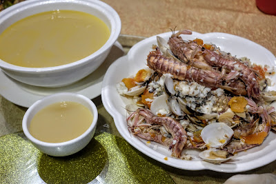 海鮮檔隨便執了一堆雜魚,給我們滾個湯,包括有沙白、瀨尿蝦、雜魚的蕃茄薯仔湯,大抵是我喝過最豐富的蕃茄薯仔湯吧。我笑說這是三聖邨專屬的海龍皇湯,應該沒有人會反對吧。