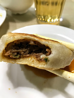 清真牛肉餅十年如一日地爆汁,輕輕地咬,澎湃的肉汁隨即爆發,連帶鬆軟香甜的牛肉餡,早知我叫多一塊。