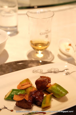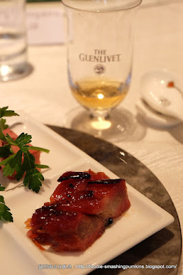 頭盤三小碟,滿福樓的叉燒,水準是不容置疑,是全港最佳的叉燒之一。清爽的冰鎮百靈菇,與惹味的黑椒鹹牛利,配以入門的12 yo,其跳脫的青蘋果清香,既沒有喧賓奪主,更平衡了叉燒,與牛利的濃膩。