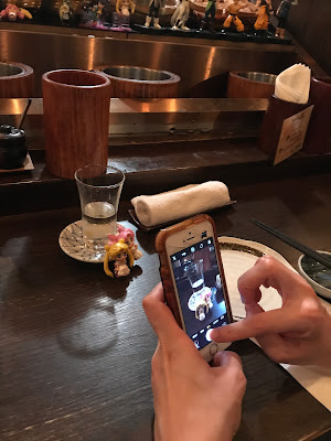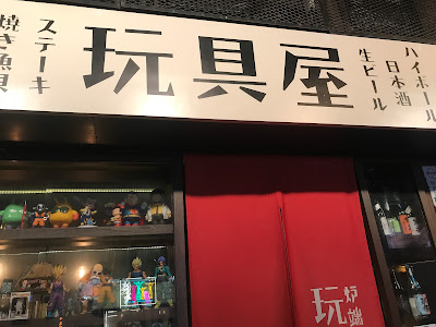 顧名思義,玩具屋是以日本動漫為主題的居酒屋,像我的七十後,龍珠、男兒當入樽,是我輩的集體回憶;坐在爐端燒吧枱前,YH見到美少女戰士模型,拿起來拍照。