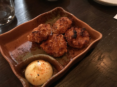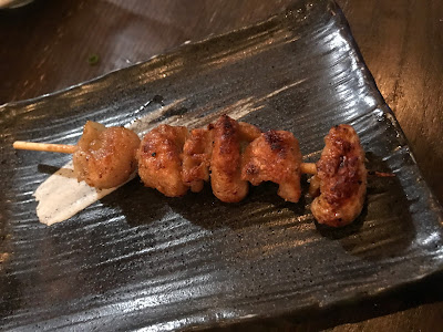 燒雞皮是膽固醇之物,咬一口,香脆油香兩者並存,佐以清酒,很不爽說。
