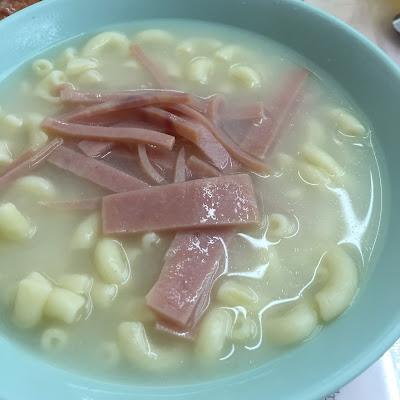 $24的港式早餐,內容是意料中事,平平無奇的火腿通粉,煎太陽蛋加條腸,蛋黃還爆開,算啦。