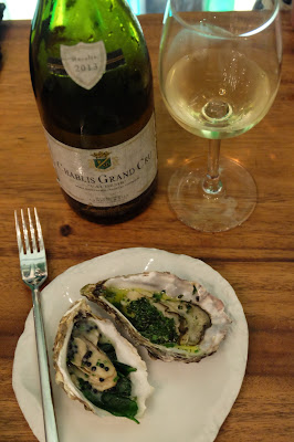 剛好當晚的飯局,因友人身體不適而取消,突然獨身的一夜,想也不想,即刻答應。生蠔加Chablis的黃金組合,教我怎去招駕?