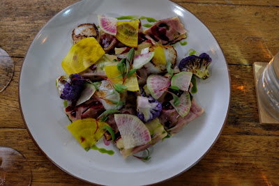 賣相美得像花園,很cheerful的自家制紅菜頭芝士雲吞,紅菜頭汁閃出的美麗,椰菜花與其他色彩鮮艷的配菜,還有煎得香嫩的帶子,把濃凋香滑的芝士雲吞照亮。