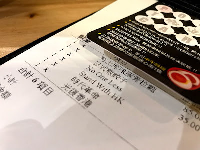 貼了一些文宣,收據上的口號,代表他們的立場,可是這裡仍可以用支付寶。