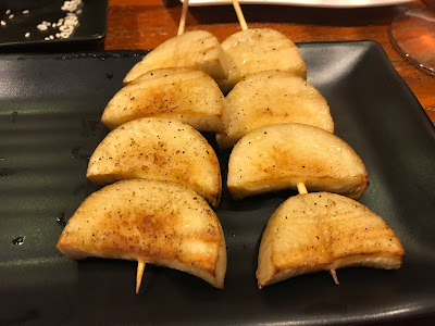 蔬菜串燒行先,秋葵、冬菇、翠玉瓜、火喉恰當,沒有下太重調味料。悉數保留食材的原味;個人覺得杏鮑菇,在云云的素菜串燒裡面,表現最佳的一員。