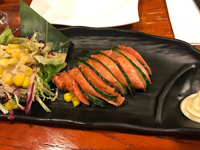 明太子是一貫的鹹香,佐酒一流,夾著青瓜片吃,藉其清新來平衡明太子的鹹。