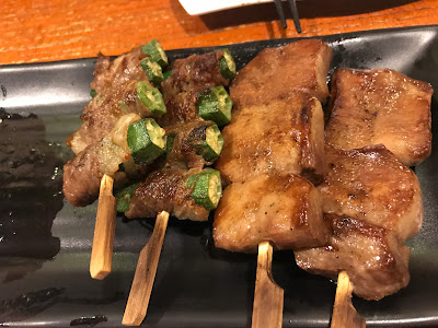 燒牛舌、牛肉秋葵卷、金菇牛肉卷、露筍卷、每一款的水準皆不錯,柔軟的牛舌帶有彈性,juicy之美妙感覺,恨不得以一杯sparkling sake來與它繾綣在舌尖上。