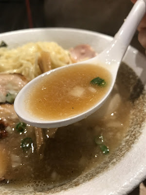 聽說其魚介是集合不同海鮮,我倒也想起上年在福岡的大重食堂,吃過的七節拉麵,並非一面倒以魚介粉當大任;用豚骨熬製的湯底,沒有九州的濃凋,相對比較順滑,清甜,沒有大鳴大放的豚骨香,與醬油很合拍,或者是豚骨平衡了醬油的鹹,魚介的風味,亦充份在湯底上展現出來,融和而不腥,散發出陣陣魚介香;再以炒洋蔥粒作點綴,藉著其釋放出來的微辛,整個湯底變得更有層次。