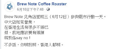 佐敦廟街的咖啡館:Studio Caffeine,與及位於大坑的姊妹店:Second Sip,我另一間經常去的咖啡店:尖沙咀麼地道N1 Coffee,上周三均有參與罷市活動,飲少一日咖啡,唔使死的。