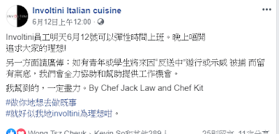 他日你們光顧以上的食肆,覺得水準不似如期的話,請不要找我悔氣,再去回想一下2019年6月12日,這些食肆為香港做過甚麼?