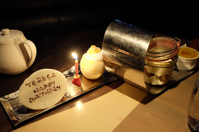 一早安排在甜品拼盤上,寫下對T小姐的祝福字句,上桌的一刻,當她流露出驚喜表情,我正在偷笑。