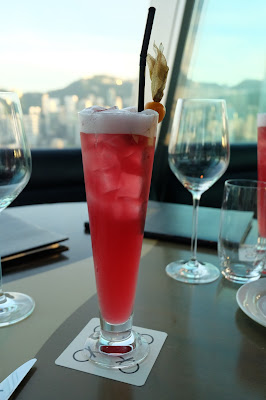 此Sunset menu並不包飲品,額外付$88,便可享用一杯cocktail,是晚,我與她喝的是Aqua Queen,是這裡其中一款招牌雞尾酒,抱著just for fun的心態,沒有刻意去研究杯中物,面臨著日落美景,酒不醉,夕陽醉了。