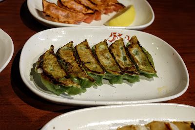 外貌如煎青椒的京都九條蔥餃子,綠色的餃皮,包著是蔥香四溢的肉餡,吃到至此,乾掉了一杯威士忌Highball。