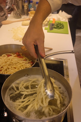 我們將製成品交給主持人,新鮮製的麵條,只須用滾水煮六分鐘便可,再與蕃茄等材料一起煮,得出來的是煙韌實在,盡收蕃茄香甜的 fusilli。