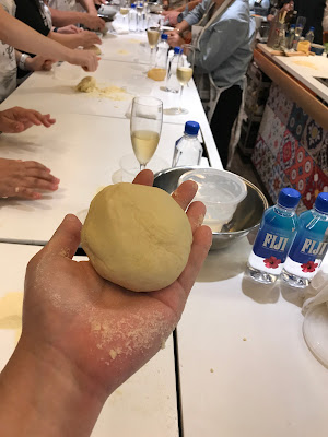 活動當日,每一位出席者先穿上圍裙,工作檯上的麵粉幼細如沙,是上等杜蘭小麥麵粉;待主持人一聲號令,逐點逐點加清水,搓成麵團,每一次不要加太多,否則就會過濕。
