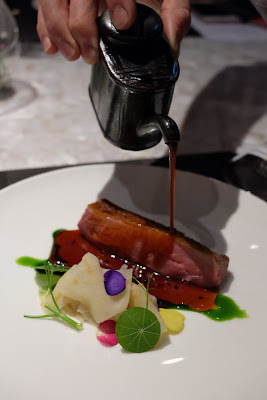 歐洲的多寶魚特別肥美,寒冷的海水,魚兒很容易儲存脂肪,這道Turbot and Oyster,首先將多寶魚的兩面煎香,封鎖其肉汁,再浸在果仁牛油裡面,最後淋上充滿青口、蝦等海鮮熬製出來的泡沫醬汁,鮮上加鮮。用紫椰菜包著鮮甜飽滿的生蠔,爽脆的菜甜與生蠔成為了天生一對。