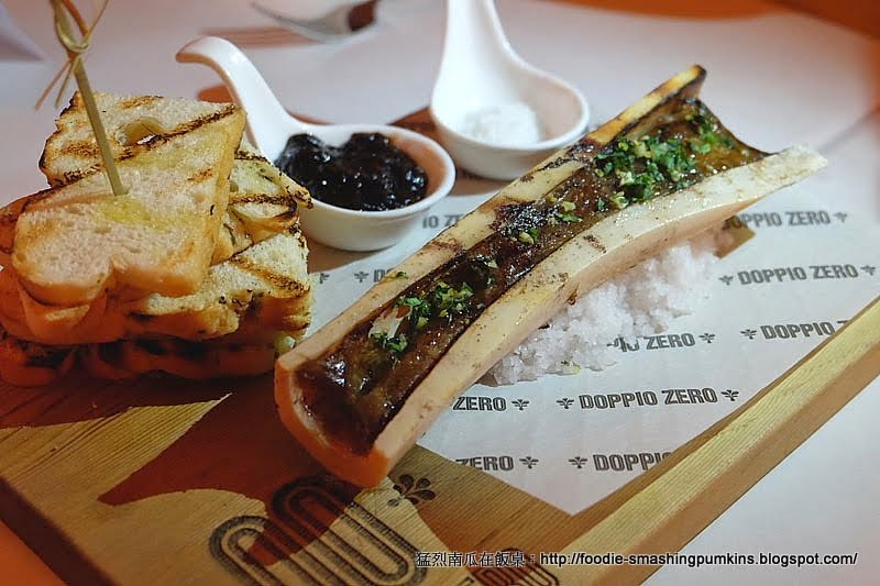 閒話少說,與C小姐寒暄過後,烤牛骨髓便送上,Roasted Bone Marrow,Balsamic Onion Jam,Sea Salt,Grilled Focaccia。無須多講,你可以說我舌頭弱智,只要是烤牛骨髓,我一定大叫美味。