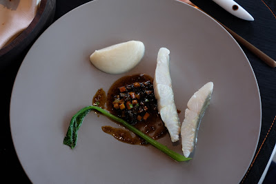 不吃羊的話,可選擇多寶魚,於北大西洋生活的魚兒,身段特別肥,魚香濃郁之外更滿佈油香,此道菜的另一亮點,就是伴碟的炒豆干粒與東風螺粒,與雪白肥美的多寶魚同吃,味覺上添了一份細緻感。