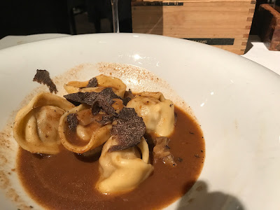 羊肉雲吞配雜菌汁,再加黑松露,滑溜的外皮下,羊肉餡的濃烈欲蓋彌彰,吸收了陣陣菌香之後,味道變得更重,不過黑松露放在這裡,就來得合情合理,其清幽像安撫了兩者之間掀起的漣漪。