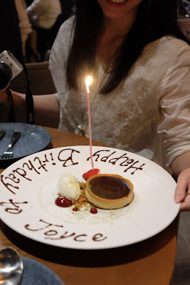 生日飯始終要有甜品,70%warm chocolate tart,插著蠟燭,寫上友人的名字,與生日快樂的字句,雖然是特價,但一樣做足全套,沒有將貨就價揸流攤。