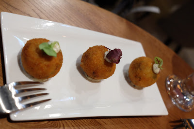 細小而圓渾,金黃的Duck Confit Risotto Ball,咬開香脆的外層,裡面的一絲絲鴨肉與意大利米,鹹香之餘亦帶著飯粒的煙韌。
