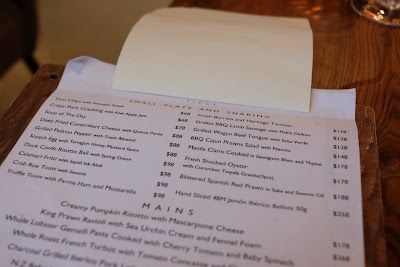 主菜餐牌一張過,接近二十道頭盤,最貴的是48個月黑毛豬火腿,賣$258。友人除了不吃青葱之外,甚麼也行,如是者將點菜的重任,包起我身上。